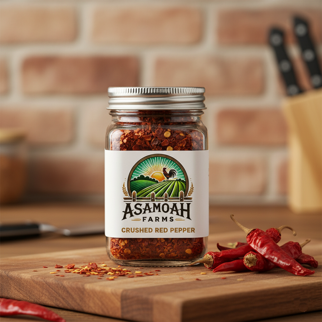 Hand‑picked cayenne peppers, naturally sun‑dried on the farm, then gently crushed for maximum aroma. Expect bold heat with citrusy, smoky notes. Perfect for pizzas, pastas, eggs, soups, and marinades.
